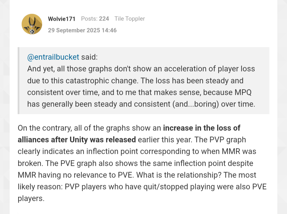 Me: it doesn't look like swaps had any impact, based on the graphs that other guy postedWolvy1700: you're wrong! Unity caused a ton of players to leave!