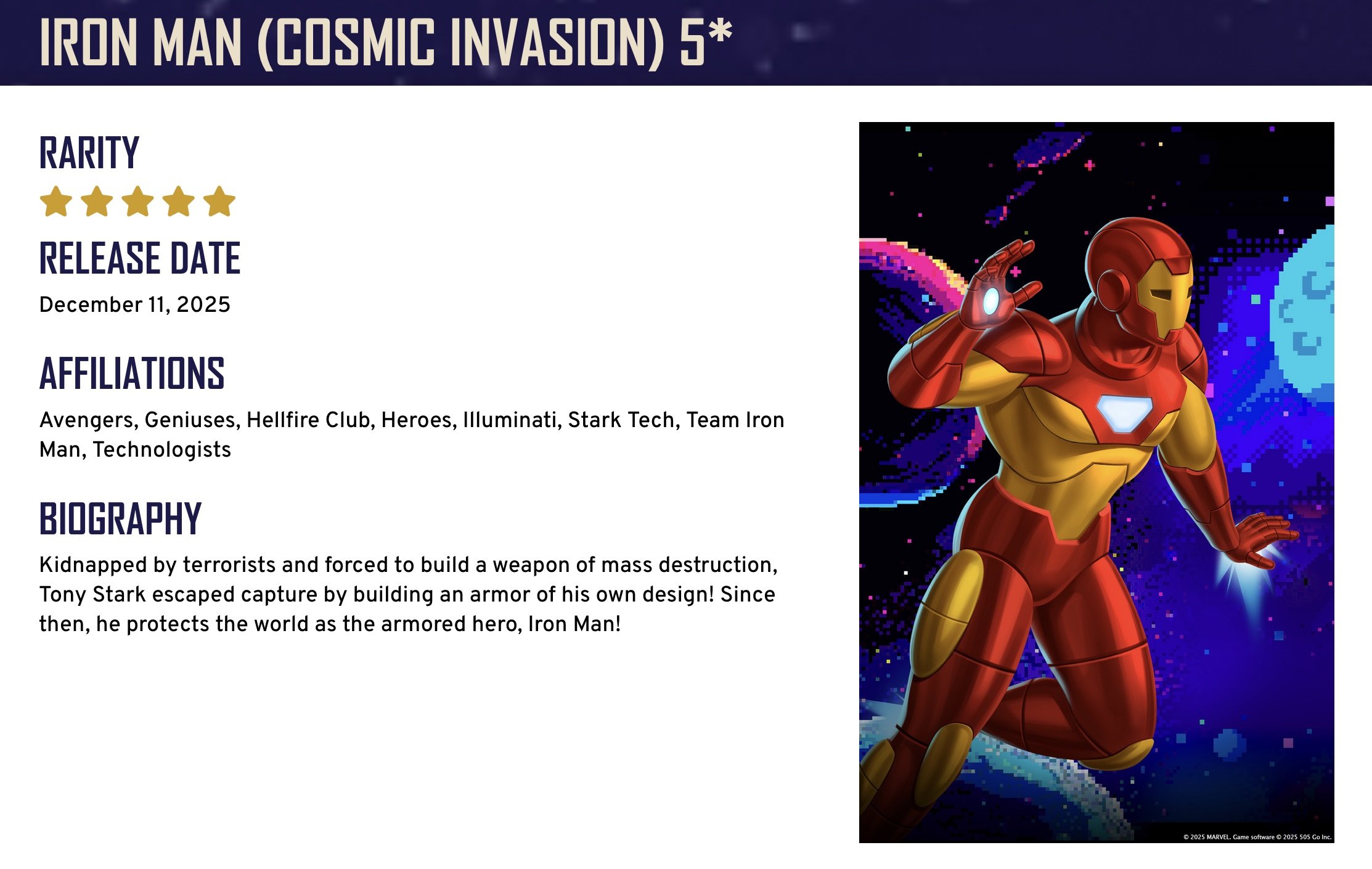 Chance to get Iron Man (Cosmic Invasion). Increased chances in 10x and 40x pulls