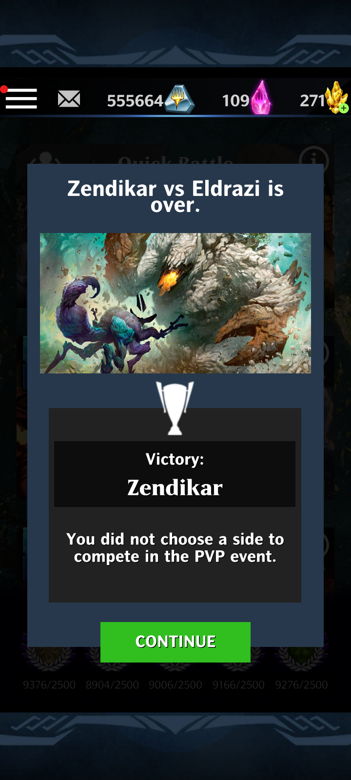 Zendikar vs Eldrazi no longer showed Continue. It said Join. I left the app and logged back in. It still said Join. I made the error of doing so.