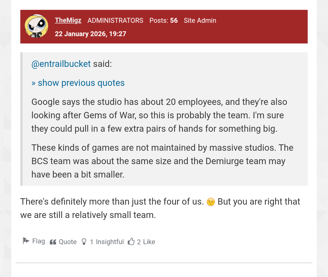 Please stop telling everyone the team consists of 5 people. They literally posted in the article saying their new/current MPQ dev team is much larger than that.